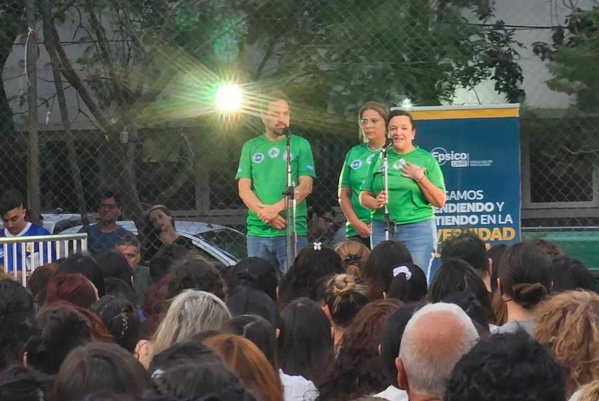 El acto contó con la presencia del Rector de la UNR, Lic. Franco Bartolacci; la Decana de la Facultad de Psicología, Ps. Soledad Cottone; la Directora de la Carrera, Ps. Iris Valles; equipo docente de la carrera, diplomados y sus familias, así como miembros de la Comisión Directiva de APUR.