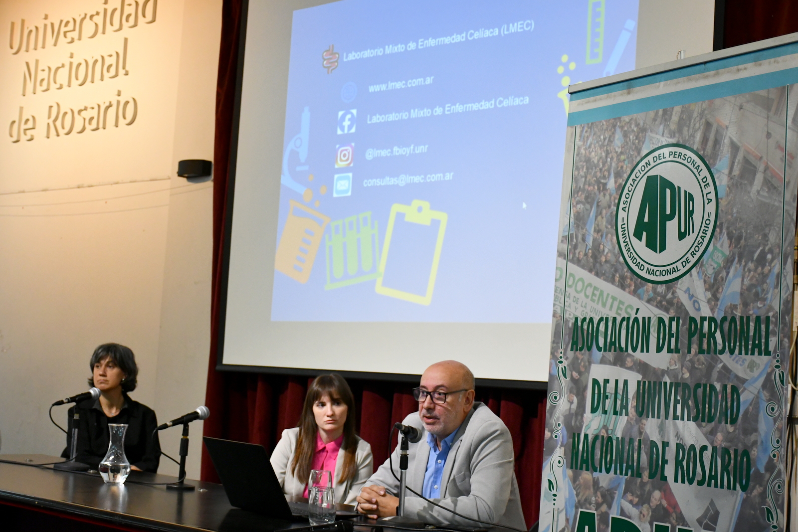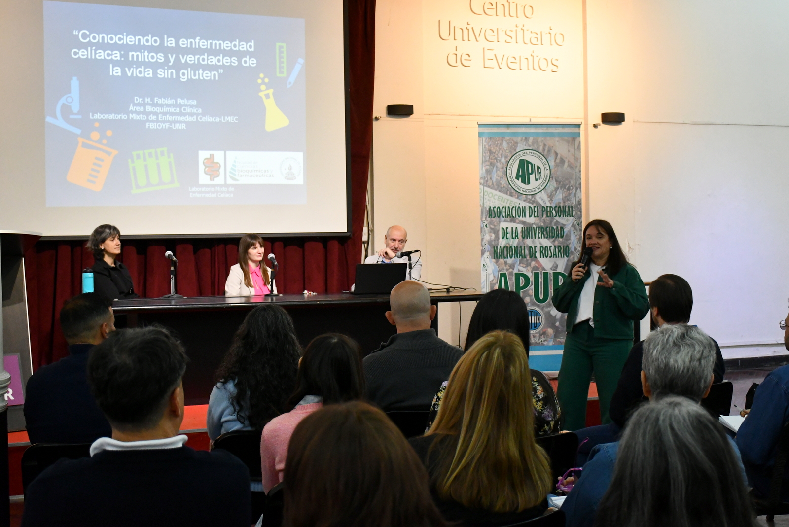 En la mañana de hoy se realizó en el Salón Norte de la Sede de Gobierno de la Universidad Nacional de Rosario la conferencia sobre “Enfermedad Celíaca”, organizada por el Centro de Especialización Laboral de APUR, en el marco de las actividades de formación y difusión científica que impulsa nuestro gremio.